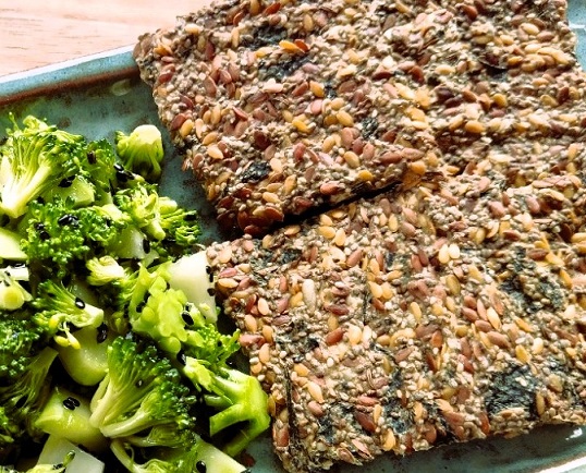 Raw veganský semínkový chlebík (krekry) s mladými jarními kopřivami